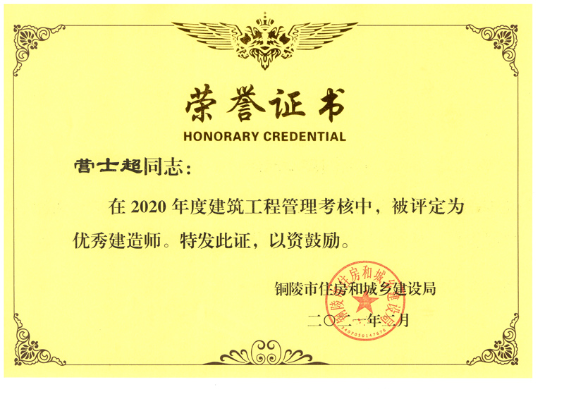 銅陵市2020年度優(yōu)秀建造師(營(yíng)士超)