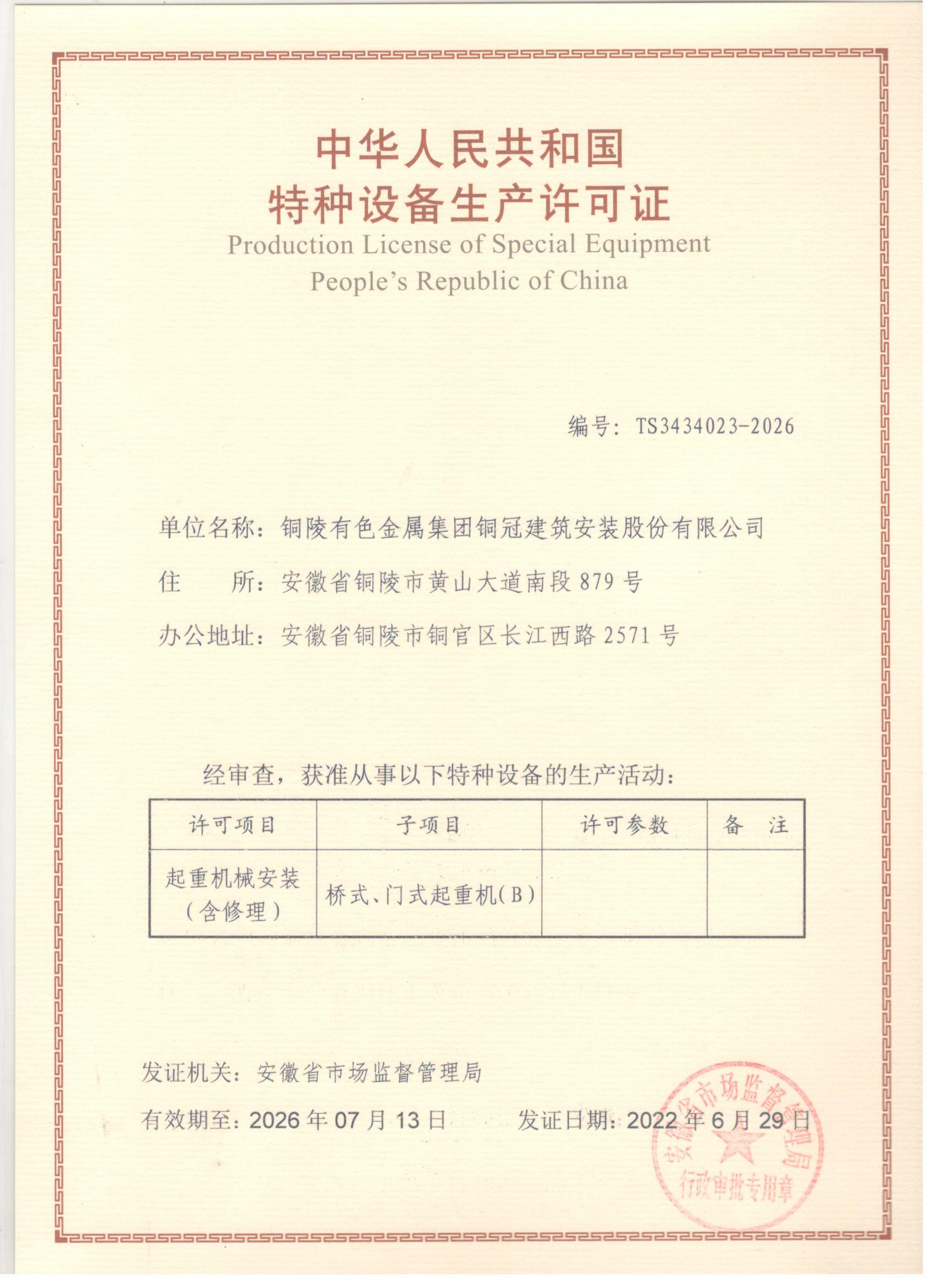 特種設(shè)備安裝改造修理許可證-起重機械